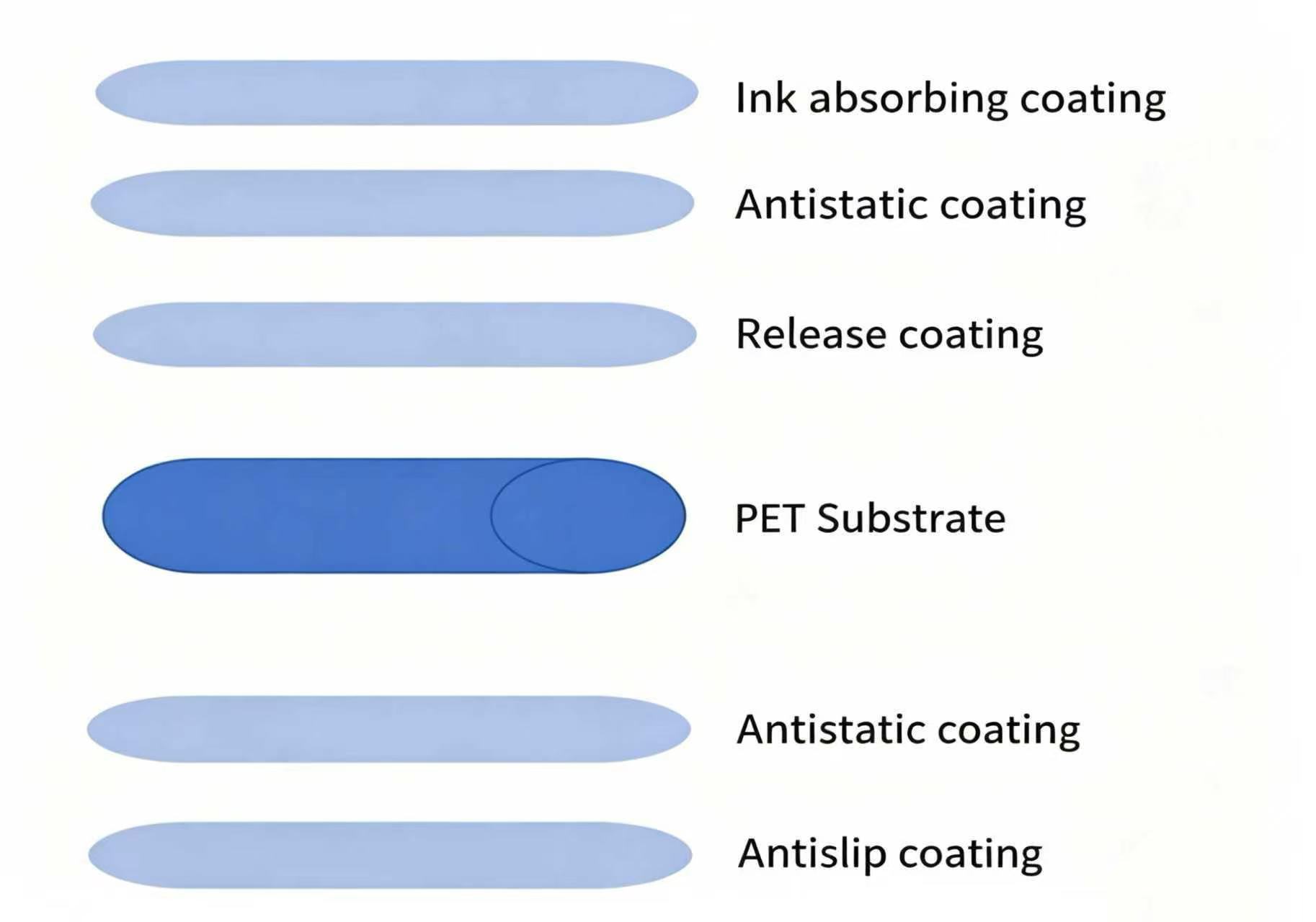 Пленка DTF производится на основе ПЭТ, покрытой разделительным слоем и чернилами.-Впитывающий слой. Двойной-Пленки с боковыми сторонами имеют заднее покрытие, обеспечивающее антистатические и антистатические свойства.-обработка скольжения.